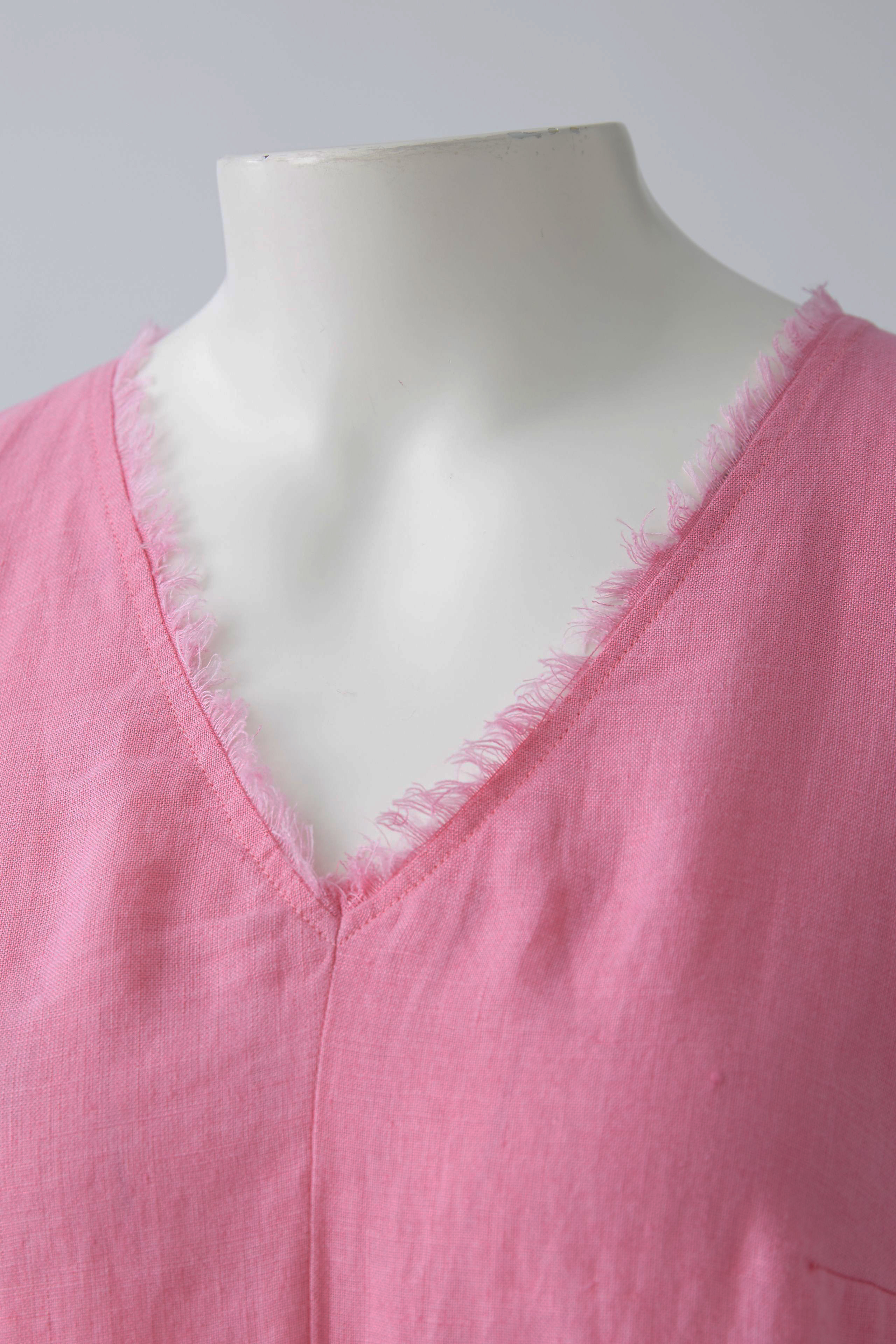 -Seitliche Eingrifftaschen Fransenkante vorne am Saum Rückenpasse aus Leinen,